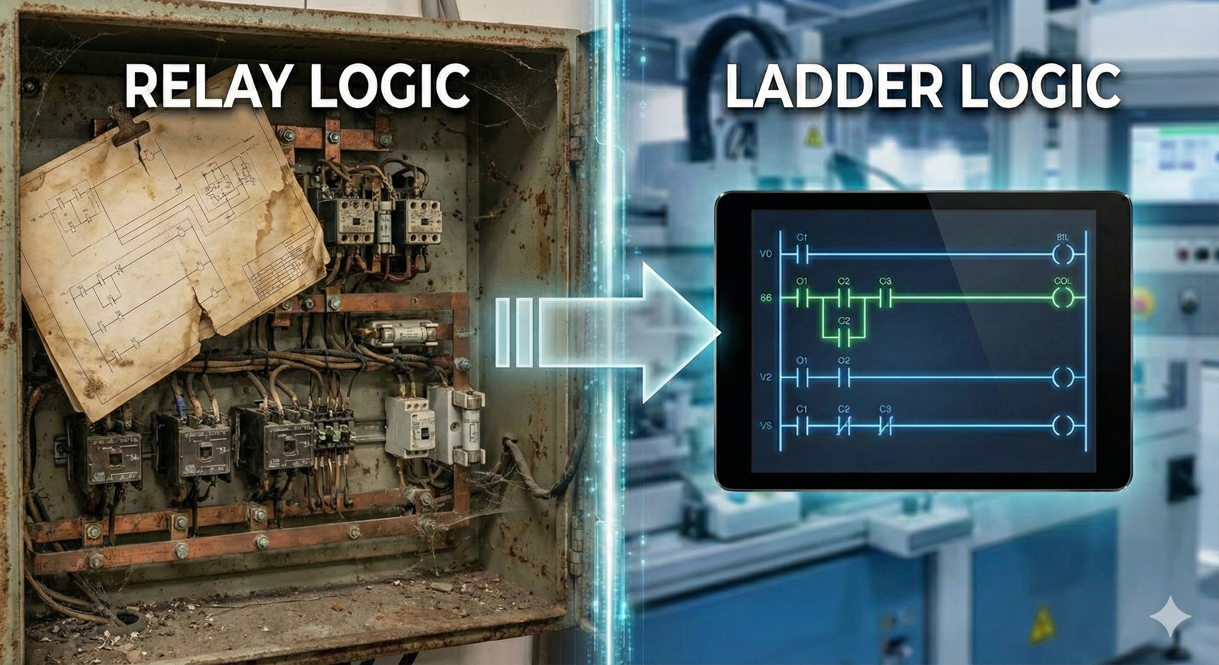 Figure 1. Relay logic cabinets were replaced by PLCs that implemented Ladder Logic.
